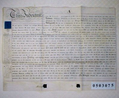 | Parchment : 70cm x 50cm 1 sheet 2 unusual black wax seals with signatures. Embossed stamp. | |||||||||||