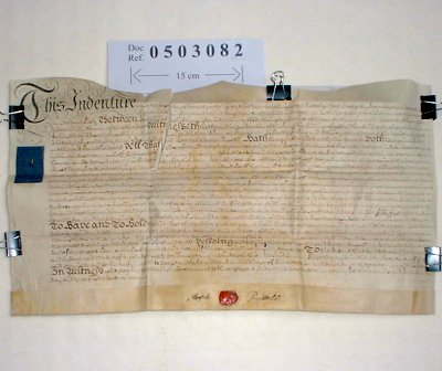| Parchment : 1 sheet 30cm x 56cm with wax seal and escutcheoned revenue stamp. | ||||||||||||