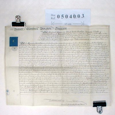 | Parchment : 49 cm x 37cm 1 sheet signed and sealed. | ||||||||||||
