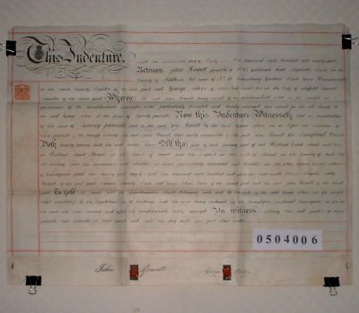 | Parchment : 1 sheet 72cm x 55cm with 2 red wax seals, signatures and revenue stamps | ||||||||||||