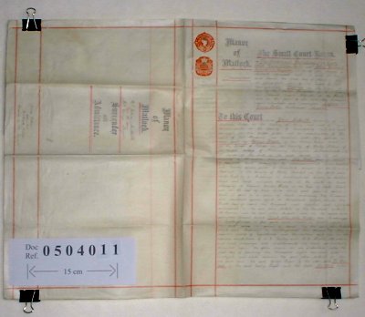 Rev Fielding Arthur Wolfe Hamilton Gell of Matlock, Derbyshire. John Gilbert Compton of Matlock, Derbyshire, Esquire. James Potter of Matlock, Derbyshire, Gentleman. John Nuttall formerly of Matlock Bridge, Derbyshire, now of Bournemouth, Hampshire, Architect / Surveyor. George Poyser of the Peveril Hotel, Dovedale, Parish of Thorpe, Derbyshire, Veterinary Surgeon. NB The Rev Fielding Gell and John Crompton are Lords of the Manor of Matlock. James Potter is Steward of the Manor. SUBJECT This document concerns the sale of copyhold land in the Manor of Matlock by John Nuttall to George Poyser for £1150. The plot measures 720 square yards and contains 2 dwelling houses known as Lyndhurst and Glenholme. To complete the formalities John Nuttall is surrendering the land to the Lords of the Manor and George Poyser is being admitted to it on payment of a fine 3d. This document is a copy of the portion of the Manor Roll which records these procedings. See also Doc. ref. 0504022 which relates to the same sale. | |||||||||||