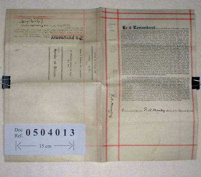 William Brear of Ovenden, Halifax, Yorkshire. Brewer. Thomas Boyd Chambers of Hebden Bridge, Yorkshire. Gentleman. John Henry Murgatroyd of Halifax, Yorkshire. Silk Spinner. Frederick Robson of Coundon, Yorkshire. Builder. John Gargett of Coundon, Yorkshire. Builder. SUBJECT The document appears to be a manorial court document (but I haven't seen one quite like it before), and concerns property at Nos 7, 9 and 10 Victoria Lane, Coundon. Frederick Robson and John Gargett have mortgaged the property for £450 to the Halifax Building Society, of which William Brear, Thomas Chambers and John Murgatroyd are Trustees. As a result, Robson and Gargett are surrendering the property to the manor and the Trustees are being admitted, A note added in 1920 on the cover indicates that the mortgage has been paid off, but this time it refer to the Manor of Bondgate in Auckland. | |||||||||||