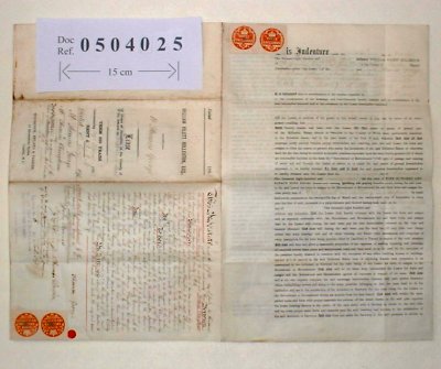 | Parchment : 2 sheet 40cm x 26cm. This is a printed document with a few blanks filled in by hand. Includes a small hand-drawn plan of the property. A second manuscript Indenture of 1893 has been added on the back. | |||||||||||||
