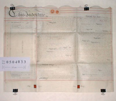 | Parchment : 57cm x 73cm with 2 wax seals, revenue stamps and a plan of the property. | |||||||||||
