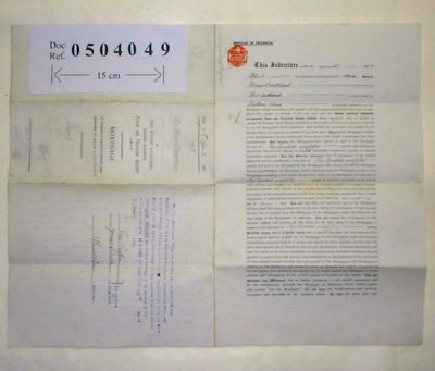 Henry Coulthard of West Auckland, Durham, Miner. Bishop Auckland Industrial Cooperative. SUBJECT Henry Coulthard is borrowing £250 from the Bishop Auckland Industrial Cooperative on security of properties Nos 7 and 10 Eden Crescent, West Auckland and a further plot of land immediately behind these two houses. It seems that Henry Coulthard bought No 7 Eden Crescent in 1902 but acquired the other parts at some later date. There is an acknowledgment on the back of the document that the mortgage was paid off in 1919. | |||||||||||