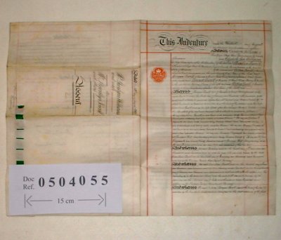 | Parchment : 2 sheets 38cm x 25cm (written on 3 sides) with 7 wax seals and revenue stamps. | ||||||||||||