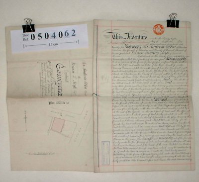 | Paper : 26x 40cm 4 sheets with plan of the property on the back cover. It is labelled 'Duplicate Conveyance' but appears to be Signed, Sealed and Duty stamped in the normal way. | |||||||||||||