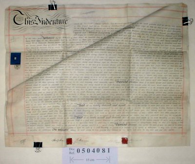 | Parchment : 2 sheets 55cm x 70cm with 2 wax seals and revenue stamps. Includes a separate Indenture of Assignment of 1871, written on the back of 1 sheet. | |||||||||||