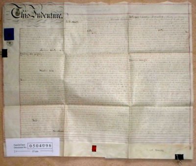| Parchment : 1 sheet 60cm x 74cm with wax seal, revenue stamp and plan of property on the reverse. | ||||||||||||