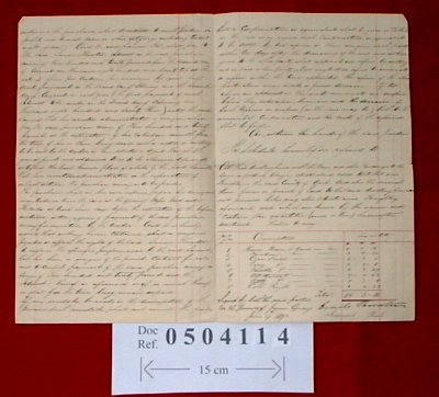 | Paper : 2 sheets 33cm x21cm. The word 'copy' has been written in one corner of the first page, but the document appears to have the signatures of both parties. | ||||||||||||