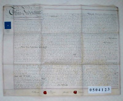 | Parchment : 1 sheet 75cm x 58cm, signed with 2 wax seals and revenue stamp. | ||||||||||||