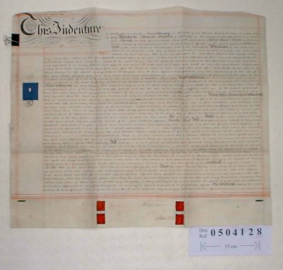 | Parchment : 1 sheet 57cm x 66cm with 4 wax seals and revenue stamps | |||||||||||