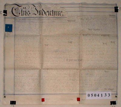 | Parchment : 1 sheet 65cm x 58cm with 2 wax seals and signatures. Revenue stamp and plan on the back. | ||||||||||||