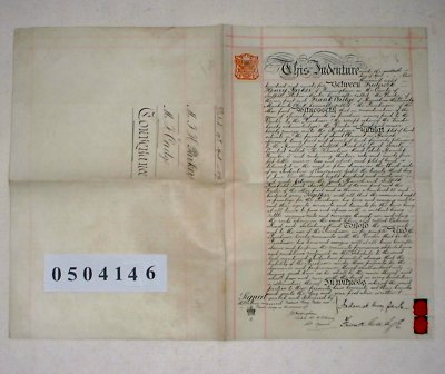 | Parchment : 2 sheets 40cm x 26cm (written on 1 side of 1 sheet only) with 2 wax seals and a revenue stamp | |||||||||||||