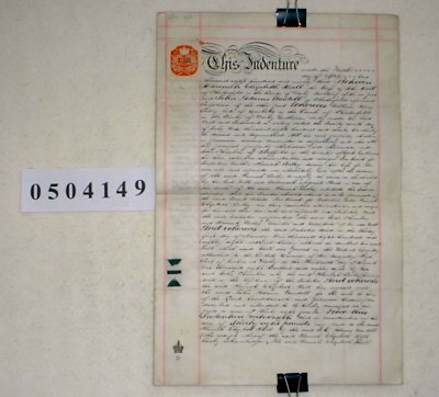 | Parchment : 2 sheets 40cm x 26cm with 2 wax seals and revenue stamp. | |||||||||||