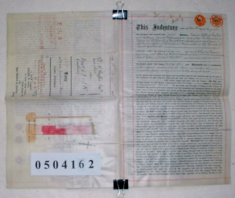 David Alfred Griffin of 41 The Broadway, Ealing, Middlesex. Auctioneer. William James Hetherington of The Broadway, Ealing, Middlesex. Auctioneer. James Shortland Aplin of Lindisfarne, Weymouth, Dorset. Gentleman. Charles Thomas Cushing of 72 Windermere Road, Ealing, Middlesex. Builder. Stanley Robert Cushing of 72 Windermere Road, Ealing, Middlesex. Builder. SUBJECT Griffin, Hetherington and Aplin are giving a 99 year lease on property at No 54 Windermere Road, Ealing, to two Cushings. The rent is £5/10/-d per annum, and we are told that this is "in consideration of the expense incurred by the lessees in erecting the dwellinghouse hereby demised". NB We have two copies of this document, one is the Lease signed by the three lessors; the other is the Counterpart Lease and is signed by the two Cushings. (Both sold separately - but at the same price. Please state which one you want). | |||||||||||
