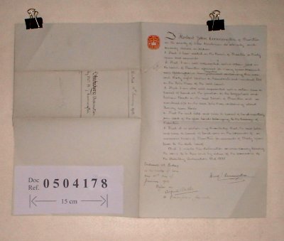 | Paper : 2 sheets 38cm x 25cm (written on 1 side of 1 sheet only) signed and stamped | |||||||||||