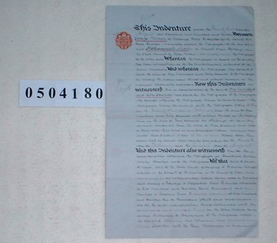 | Paper : 2 sheets, 25cm x 38cm signed sealed and stamped. With second indenture of 1961 on third page. | |||||||||||