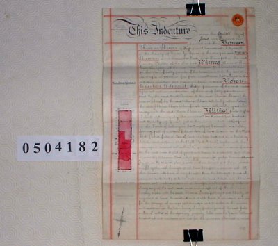 | Parchment : 2 sheets, 2 wax seals with signatures, revenue stamp and plan of property on front sheet | |||||||||||