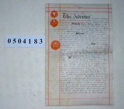 | Parchment : 2 sheets 24cm x 38cm with 2 wax seals and signatures and revenue stamps. | |||||||||||