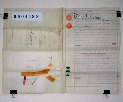 | Parchment : 2 sheets 30cm x 44cm written on one side only. Wax seals, signatures and revenue stamps. | |||||||||||