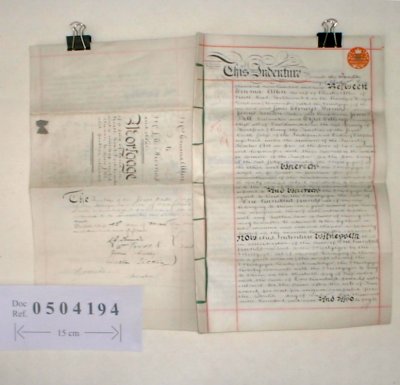 | Parchment : 26cm x 40cm 3 pages handwritten on all sides, signed with wax seal and revenue stamp. | ||||||||||||