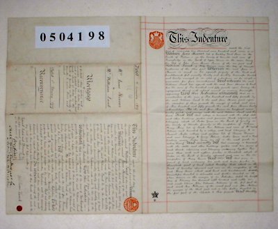 | Paper : 2 sheets 26cm x 40cm signed, sealed and stamped. A second Indenture of 1909 had been added on the cover. | |||||||||||