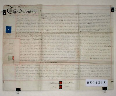 | Parchment : 1 sheet 57cm x 75cm 2 wax seals with signatures and revenue stamps. Includes a small plan of the property and Schedule. | |||||||||||