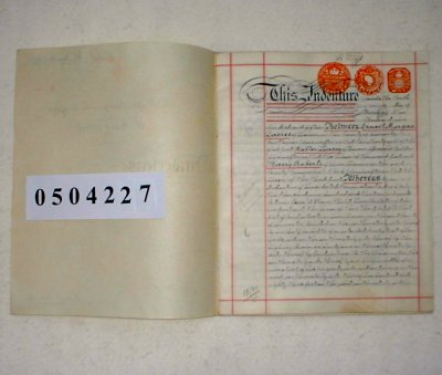 | Parchment : 5 pages manuscript all sides, plus covers. 22cm x 28cm signed with 3 wax seals and revenue stamps. | ||||||||||||