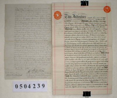 | Paper : 2 sheets 39cm x 25cm signed, sealed and stamped. Includes a separate sheet with a manuscript memorandum of a related indenture of 1906. | |||||||||||
