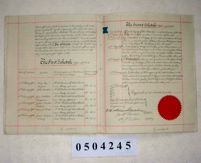 | Parchment : 22cm x 28cm 5 sheets written on both sides plus cover. Signed sealed and stamped with red wax seal and signature. | |||||||||||