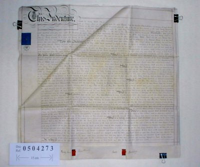 | Parchment : 2 sheets 59cm x 70cm with 2 wax seals and revenue stamps. | |||||||||||