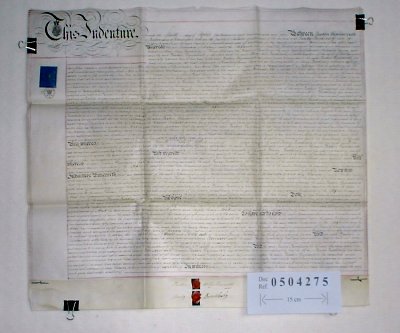 | Parchment : 1 sheet 61cm x 75cm with 2 wax seals and revenue stamp. | ||||||||||||||