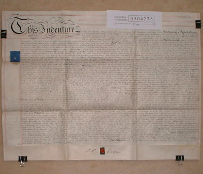 | Parchment : 1 sheet 56cm x 74cm with 1 wax seal and revenue stamp. | ||||||||||||||