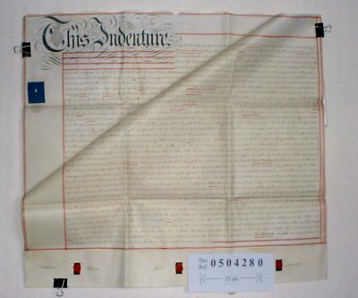 | Parchment : 2 sheets 60cm x 74cm with 3 wax seals and revenue stamps. | ||||||||||||||