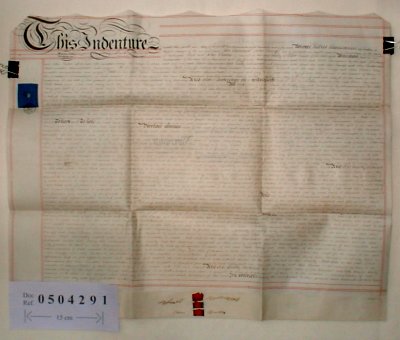 | Parchment : 1 sheet 59cm x 72cm with 3 wax seals, and revenue stamp | |||||||||||||