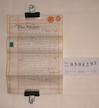 | Parchment : 2 sheets 40cm x 26cm with wax seal and revenue stamps | |||||||||||