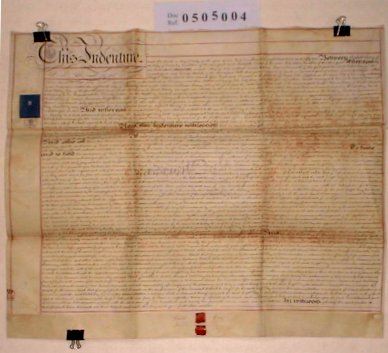 | Parchment : 1 sheet 61cm x 73cm with 2 wax seals and revenue stamps. | |||||||||||||
