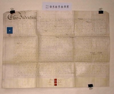 | Parchment : 1 sheet 54cm x 74cm with 3 wax seals and revenue stamp. | |||||||||||