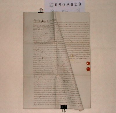 | Paper : 2 sheets 49cm x 34cm with 2 wax seals and revenue stamps (Note that the day and month of the contract has never been filled in, suggesting that the contract was never completed). | |||||||||||