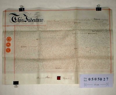| Parchment : 1 sheet 48cm x 70cm with 1 wax seal and revenue stamp. | |||||||||||