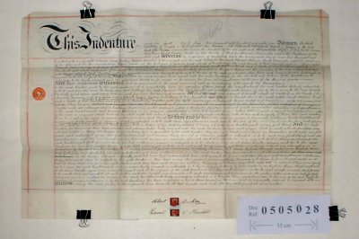 | Parchment : 1 sheet 47cm x 70cm with 2 wax seals and revenue stamp. | |||||||||||