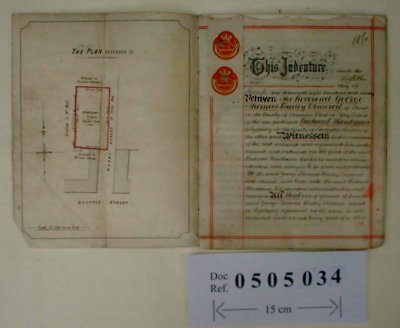 | Parchment : 8 sheets 27cm x 22cm with 1 wax seal, revenue stamps and plan of the property. | |||||||||||