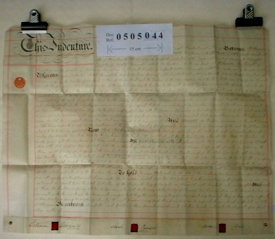 | Parchment : 1 sheet 58cm x 74 cm with 3 wax seals and revenue stamp. | |||||||||||||||