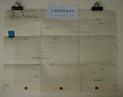 | Parchment : 1 sheet 56cm x 75cm with 3 wax seals and revenue stamp | |||||||||||