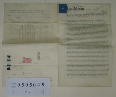 | Parchment : 2 sheets 42cm x 26cm with 3 wax seals, revenue stamp and small plan on the reverse. | |||||||||||||||