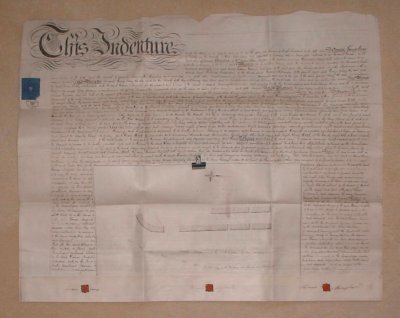 | Parchment : 1 sheet 63cm x 79cm with 3 wax seals, revenue stamps and a plan of the property on a 2nd sheet 25cm x 40cm. | ||||||||||||