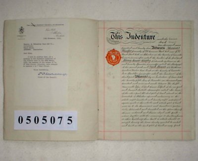 | Paper : 6 sheets 22cm x 28cm plus cover. 3 wax seals with signatures and revenue stamps. | ||||||||||||