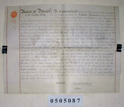 William Thompson of Town End, Bonsall, Derbyshire. Gardener. Clara the wife of William Thompson. Charles Granville Heny of Matlock, Derbyshire. Solicitor. SUBJECT A record of the Court of the Manor of Bonsall, Derbyshire. The summary and description of this document are being processed and will appear as soon as possible. If you wish to know details in the meantime, please contact familychest@aol.com by email and we will respond by return. | |||||||||||