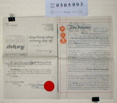 Sidney KEIGHLEY of 6 Salisbury Street, Calverley, Yorkshire. Electrical Fitter. The Leeds Permanent Benefit Building Society. SUBJECT Sidney Keighley is borrowing £224 from the Leeds Building Society on a mortgage on property at number 6 Salisbury Street, Calverley. There is an acknowledgment added on the cover that the mortgage was paid off in 1937. | |||||||||||